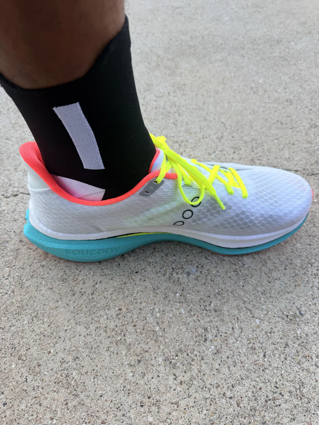 Love these socks! The pop of pink is a perfect pick me up before heading out on my run. The socks are light weight, fit perfectly, and keep my feet dry. Highly recommend.